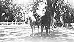 It was the time the family spent the summer at Taos. We were at the San Geronimo Lodge and each of the four children had their own horse available. These horses were quite something. If you took off at a run across the desert, you soon discovered that these Indian ponies had their own way of going. As you approached a sage brush, the pony would decide how to get to the other side -- he would go around it to the left, he would go around it to the right, he would go over it or he would go through it. All of this was done at a full run. The only choice the rider had was whether to fall off or stay on. One day John Lujan came over and asked my brother Bob and I to ride over to the pueblo with him. So Bob and I saddled our ponies and we took off. The road to Taos was a wagon road -- two ruts with a high crown between them. Bob and I rode in the ruts and John rode on the crown. John asked us if we would like to play an Indian game and, of course, we said yes. So John explained it to us. We set the three horses to running and then we try to push the other guy off his horse. A very simple game. John was rather short and stocky. His arms were nearly as big around as our thighs and there was no fat on him. He was immensely powerful and he was always giggling. He was really a wonderful man. So we started out. The horses ran down the road together, we wrapped the reins around the horns of the saddles and began pushing and pulling. Bob would push John and on the other side I would pull. Then suddenly we would change. Once in a while, we would get John in a precarious position. At these times he would reach out and grab Bob by the upper arm and at the same time grab me the same way and then lift us off our horses until he felt safe again. This went on for a couple of miles.
