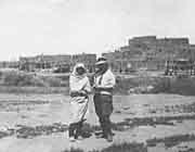 This day was the day of the Santo Domingo Corn Dance, a very large affair. We arrived about 10:00 A.M. and there were a great number of people there -- tourists and Indians. The tourists came from all over and so did the Indians. There were two views of this event -- the visiting Indians and the tourists, most of them, viewed it as a sort of fiesta. The Santo Domingo Indians viewed it strictly as a religious ceremony. The visiting Indians wore a great deal of jewelry and they tried to sell most of it.